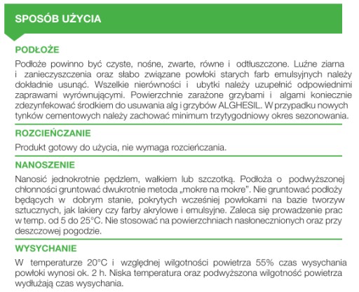 SEMPRE GRUNT W to uniwersalny, gotowy do użytku, preparat gruntujący. Przeznaczony jako podkład pod farby wewnętrzne oraz do wzmacniania posadzek cementowych. Może być stosowany na typowe podłoża mineralne, powierzchnie gipsowo-kartonowe oraz inne podłoża o wysokiej chłonności. Nie zawiera rozpuszczalników, wyrównuje chłonność podłoża. Nie ogranicza przepuszczalność pary wodnej. Ogranicza powstawanie wykwitów, głęboko penetruje podłoże.
