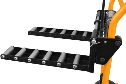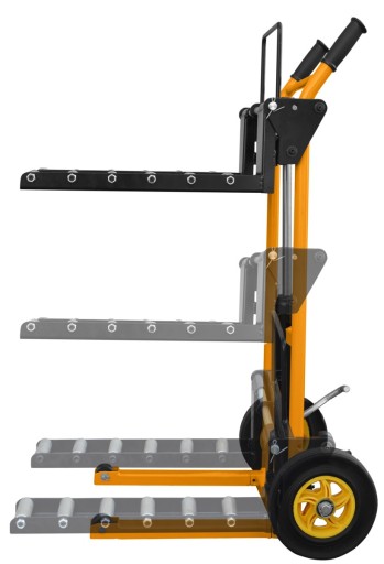 Nasz wózek możesz zatrzymać na każdej wysokości , konstrukcja zbudowana na podnośniku butelkowym pozwala zatrzymać go w każdej chwili . Nie ma żadnych skokowych blokad które uniemożliwiłyby załadunek lub rozładunek.