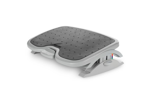 - Podnóżek utrzymuje nogi na podwyższeniu zapewniając lepszą pozycję i krążenie podczas pracy przy biurku oraz zmniejszają nacisk na dolną część pleców.