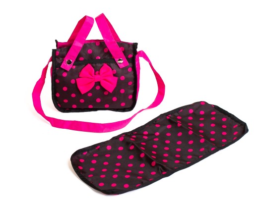 Śliczna torba do wózka dla lalek, którą pokochają wszystkie dziewczynki. Torebka ta to realistyczne odwzorowanie prawdziwych toreb do wózków dziecięcych. Posiada krótkie uszka z zapięciem na napy do przewieszenia przez rączkę wózka oraz długi pasek do noszenia na ramieniu.