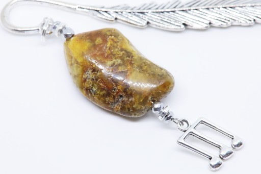 Elegancka zakładka do książki z zawieszką w kształcie nut z dodatkiem bursztynu.