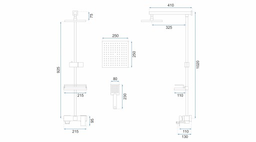 - Skład zestawu: Bateria, wąż prysznicowy ze słuchawką, deszczownica