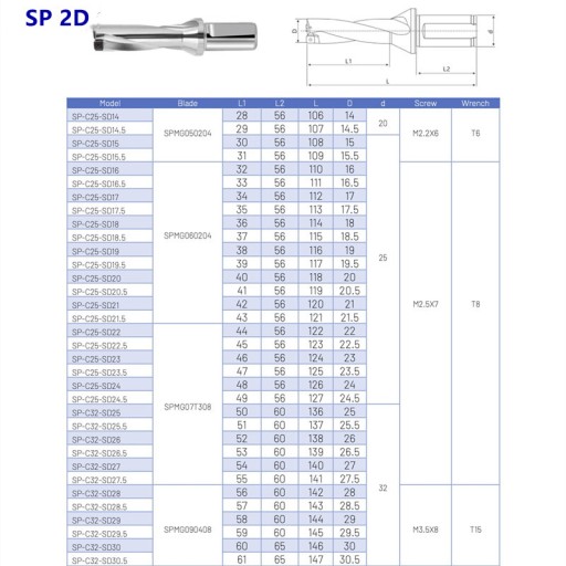 Wiertło składane fi 38 długość 2D firmy TechArt SP-C32-SD38-2D na płytki SPMG110408