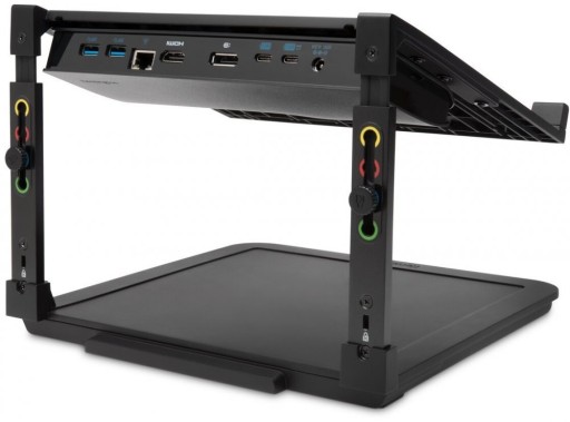- Umożliwia zamontowanie zgodnej uniwersalnej stacji dokującej Kensington pod platformą, co doskonale sprawdza się na biurkach o ograniczonej ilości miejsca.