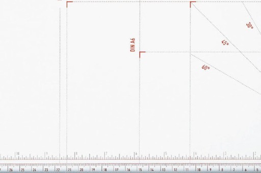Wydajne i łatwe cięcie: standardowe formaty papieru, oznaczenia wartości kątowych i popularne rozmiary zdjęć są nadrukowane na stole roboczym.