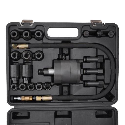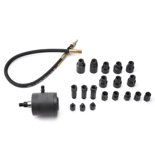 Zestaw do wyciągania zapieczonych wtryskiwaczy przy pomocy sprężonego powietrza i mechanizmu udarowego.