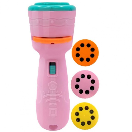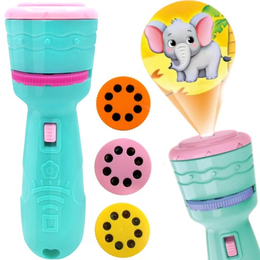 ZABAWKOWA LATARKA Z PROJEKTOREM – wyjątkowy projektor w kształcie poręcznej małej latarki, która zmieści się nawet w niewielkiej rączce. Posiada ona 3 wymienne tarcze, na których znajduje się po 8 obrazków
