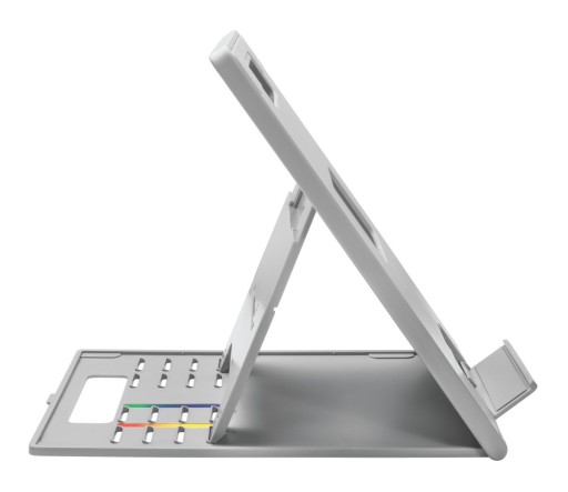 - Płaska, składana konstrukcja, wbudowany uchwyt i solidne, twarde krawędzie zapewniające dodatkową ochronę sprawiają, że podstawka idealnie sprawdza się podczas podróży.