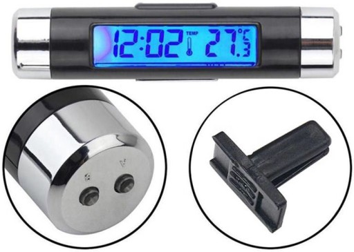 Elektroniczny zegarek i termometr samochodowy na baterie (2x AG3) duży wyświetlacz LCD z niebieskim podświetleniem