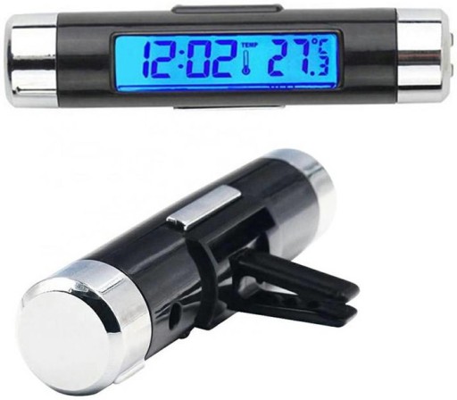 Niezwykle estetyczny gadżet który doskonale wkomponuje się jako dodatkowy element wyposażenia naszego auta. Umożliwia pomiar temperatury wewnątrz auta za pomocą wbudowanego czujnika. Termometr posiada duży, czytelny wyświetlacz LCD z niebieskim podświetleniem (zasilanie z wewnętrznej baterii). Klips umożliwia przypięcie gadżetu do kratki nawiewu w kabinie. W zestawie mocna dwustronna taśma klejąca do łatwego zamocowania termometru na tapicerce samochodu.
