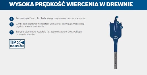 Szybkie wiercenie jest łatwe dzięki technologii „Bosch Tip Technology”.