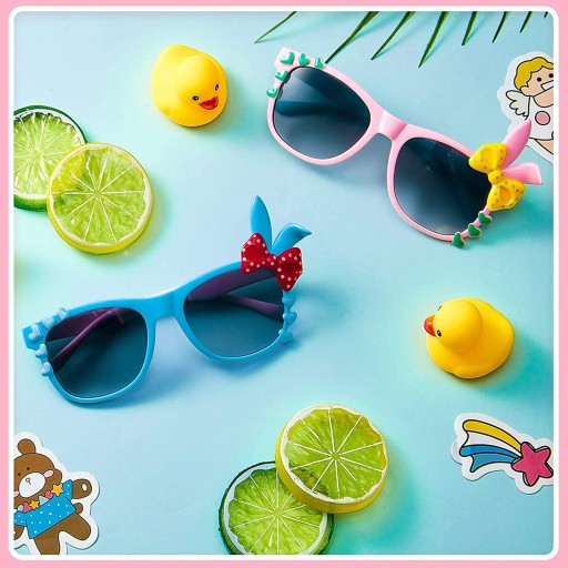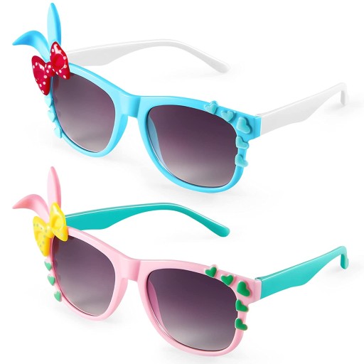 Otrzymasz łącznie 2 pary okularów przeciwsłonecznych dla małych dzieci ze wzorem zajączka, kokardy i serca w 2 kolorach, szykowne i przyjemne w noszeniu; różowe okulary są fantazyjne i żywe, a niebieskie okulary są delikatne i słodkie, możesz wybrać okulary, które odpowiadają Twoim preferencjom