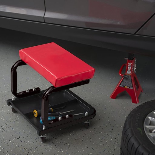 Jeżdżący stołek warsztatowy z wbudowaną półką na narzędzia, który znajdzie zastosowanie w każdym warsztacie. Posiada 4 obrotowe kółka, jest lekki przez co praktyczny i wytrzymały Wykonany z bardzo solidnego stalowego profilu, wytrzymujący obciążenie nawet do ok.136 kg. Dodatkowo ma całkowicie wyściełane siedzisko i dużą półkę na narzędzia
