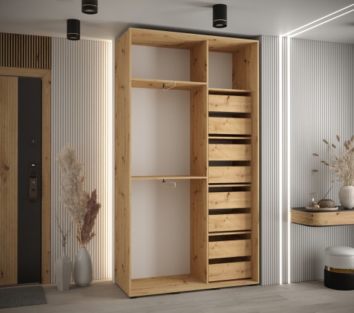 - czarny mat + dąb artisan + prowadnice i uchwyt: czarny