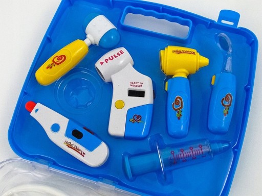 Poprzez zabawę poznaje przybory lekarskie - dzięki czemu badanie lekarskie nie jest straszne :-)