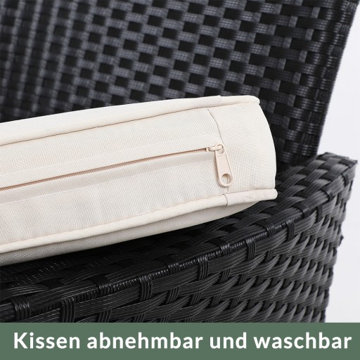 Poduszki na siedziska o grubości 7 cm są wodoodporne, można je zdejmować i prać.