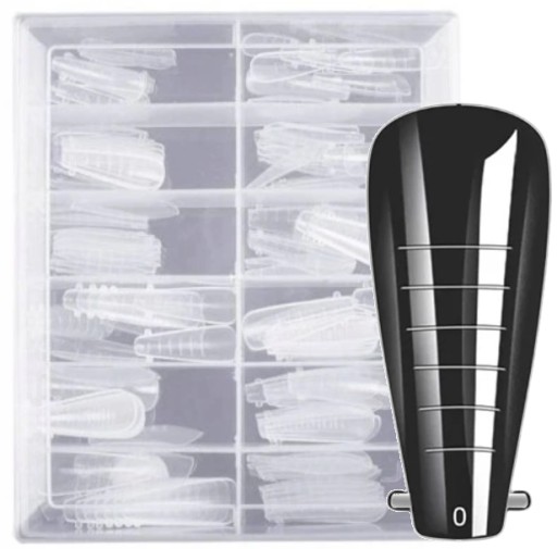 Przedłużanie paznokci nigdy nie było tak proste! Pracując bezbarwnymi dual formami w łatwy sposób uzyskasz swój ulubiony kształt paznokci. Co ważne, dzięki tej metodzie przedłużania paznokci, każdy z nich będzie w takim samym kształcie. Szablony Dual Form są wykonane z trwałego tworzywa, bardzo łatwo odklejają się od masy, można stosować je wielokrotnie! Zestaw zawiera 120 sztuk form w 12 różnych rozmiarach. Formy można sterylizować w autoklawie parowym.