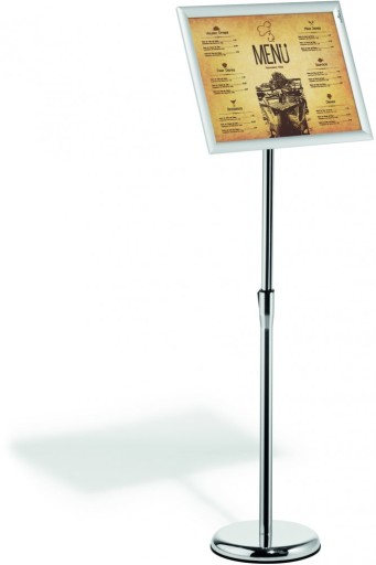 Stojak podłogowy z zatrzaskową ramą aluminiową - doskonały i czytelny sposób na prezentację informacji, broszur, menu restauracji, itp.