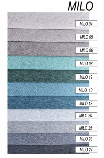 Tkanina MILO to klasyczna plecionka z bardzo drobnym splotem, przez co jej powierzchnia jest gładka oraz miękka. Jej puchowa struktura delikatnie mieni się w świetle, tworząc refleksy. Posiada niezwykle pożądane cechy użytkowe. W związku z tym na pewno optymalnie sprawdzi się we wnętrzach, długo ciesząc domowników swoim wyglądem, bez konieczności wkładania dużego wysiłku w pielęgnację materiału.