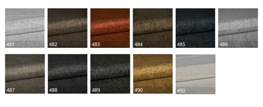 Do tego mebla dostępne są powyżej wymienione tkaniny. Możemy przesłać w odpowiedzi na "pytanie do sprzedającego" więcej informacji dotyczących danego materiału. Ustawienia monitora/telefonu mogą mieć wpływ na nasycenie barw i w rzeczywistości kolorystyka może się różnić od tej pokazanej w ofercie, dlatego jeśli są Państwo zainteresowani to zachęcamy do zadawania "pytania do sprzedającego". Udzielimy wszelkich informacji odnośnie tkanin, żeby rozwiać wątpliwości odnośnie kolorystyki i struktury.