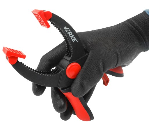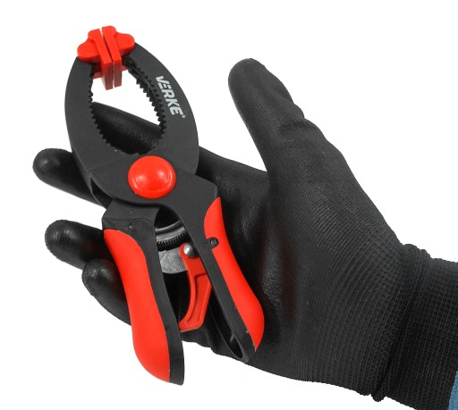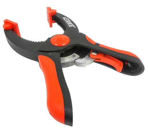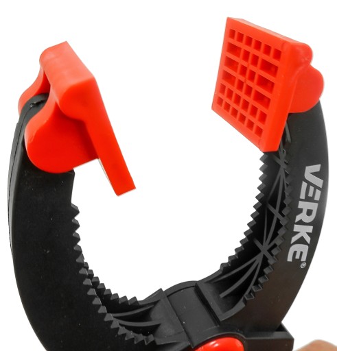 Ścisk sprężynowy z zapadkową blokadą. Umożliwia szybkie, punktowe mocowanie przy sklejaniu i przytrzymywaniu różnych elementów np. w pracach stolarskich i modelarskich.
