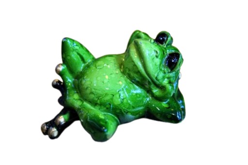 Zabawna figurka leżącej żaby, która ożywi każdą półkę czy biurko.