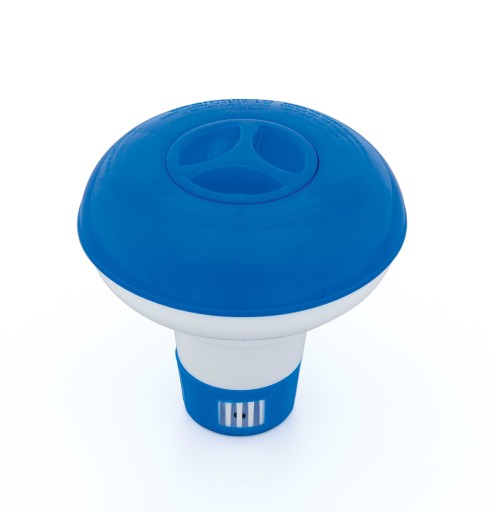 Pływak dozujący chemię basenową i inne preparaty oczyszczające wodę w zbiorniku. Jest to niezbędny element wyposażenia basenu ogrodowego. Prezentowany model pływaka przystosowany jest do tabletek 2,5 cm.