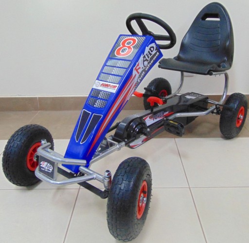 F8 Gokart na pedały z pompowanymi kołami i hamulcem ręcznym.