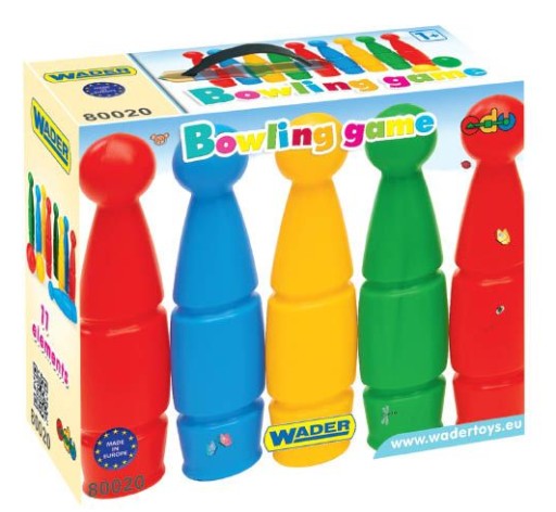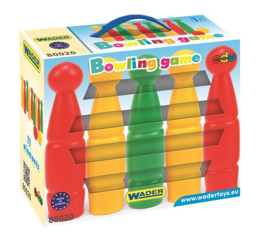 Wspaniała gra w kręgle w wersji dla najmłodszych!Zestaw składa się z 9 kolorowych kręgli i 2 kul. Kręgle są doskonałą formą spędzania wolnego czasu dla dziecka, ponieważ można grać w nie w pojedynkę lub w grupie, rozwijając przy tym zdolności manualne oraz precyzję.Produkt zapakowany w karton ułatwiający ich przechowywanie.