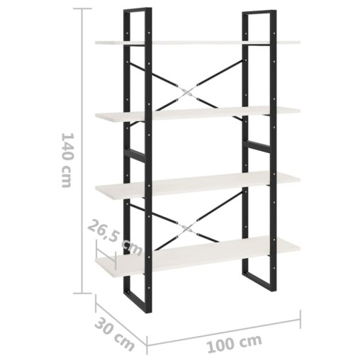 Стеллаж книжный 4-х ярусный, белый, 100х30х140, п