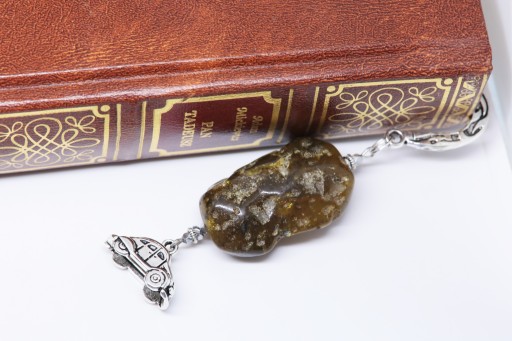 Elegancka zakładka do książki z zawieszką w kształcie garbusa z dodatkiem bursztynu.