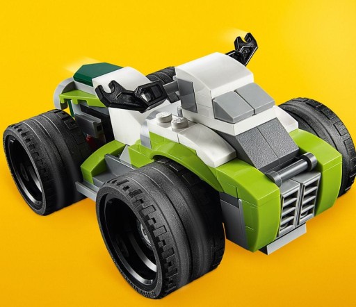 Zestaw LEGO Creator 3 w 1 umożliwia zbudowanie trzech różnych modeli do zabawy. Dzieci mogą zbudować rakietowy samochód i przebudować go na terenówkę lub quada. Mogą też uruchomić wyobraźnię i zbudować coś zupełnie nowego. W rakietowym samochodzie i terenówce można posadzić minifigurkę (której nie ma w zestawie). Ta interesująca zabawka konstrukcyjna zachęca do twórczej zabawy i jest dobrym pomysłem na prezent z każdej okazji.Popularne i realistyczne modele.