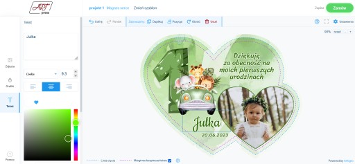 Wybierz szablon, wgraj zdjęcie, wybierz czcionkę, styl oraz fonty (pamiętaj o zmianie przykładowego imienia i daty, my nic nie zmieniamy)