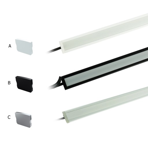 - oprawę LED - materiał aluminium anodowane(czarny, srebrny)/ aluminium lakierowane RAL9016 (biały), zaślepki na końcach - tworzywo sztuczne,
