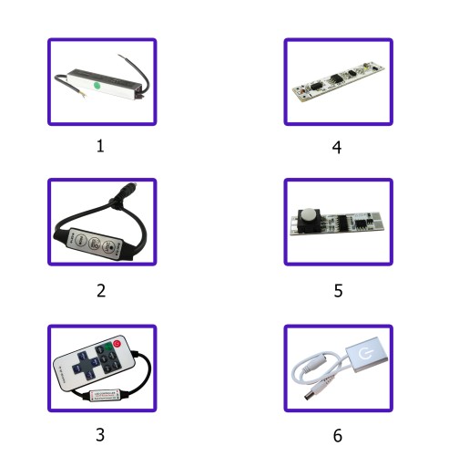 Jeśli interesuje Państwa oprawa z zasilaczem instalacyjnym i włącznikiem bezdotykowym, powinni Państwo wybrać zastaw podstawowy i dwie dopłaty odpowiednio za zasilacz instalacyjny i wymianę włącznika na bezdotykowy.