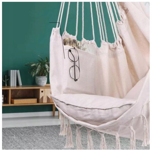 ✅Hamak brazylijski krzesło z poduszkami ecru drewniany pałąk ✅