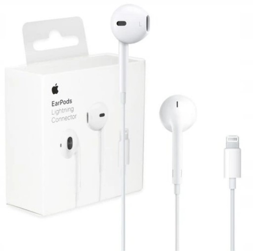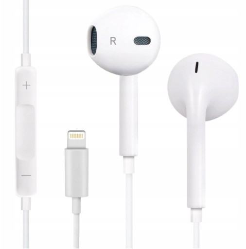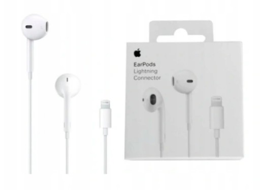 Nowe oryginalne słuchawki firmy Apple ze złączem Lightning.