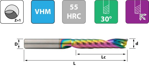 Frez węglikowy jednopiórowy z pokryciem DLC do obróbki aluminium i metali miękkich.