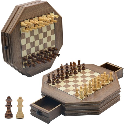 : Bierki szachowe można włożyć do szachownicy w łatwego przechowywania