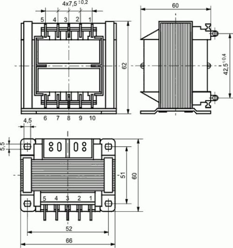 - wyprowadzenia uzwojenia wtórnego 10-6