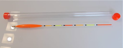Spławik przelotowy wraz z tubą do jego przechowywania.