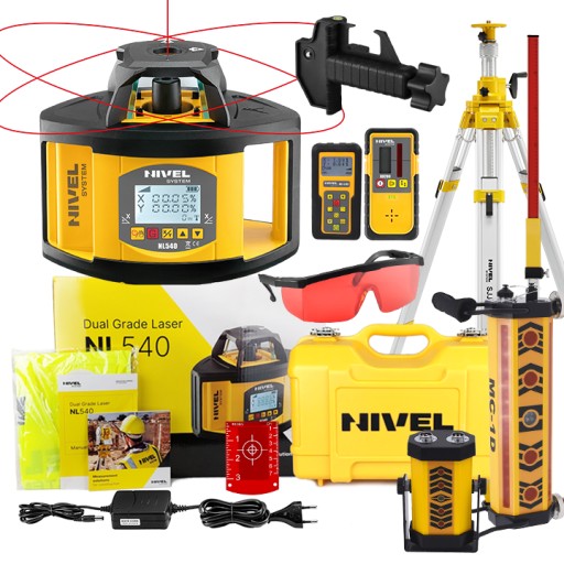 Nivel System NL540 to wielozadaniowy niwelator laserowy zapewniający wszechstronne zastosowania ogólnobudowlane. Prace mogą być prowadzone wewnątrz i na zewnątrz budynku z czujnikiem. Generowana płaszczyzna wyznacza referencje dla prac poziomych i pionowych, płaszczyzna laserowa może być pochylana (cyfrowo) w jednym lub w dwóch kierunkach. Sprzęt zapewnia wysoką dokładność realizowanych prac, nawet na dużych odległościach i w ciężkich warunkach terenowych. Sprzęt jest przyjazny użytkownikowi dzięki intuicyjnemu interfejsowi z wyświetlaczem LCD. Jego mocną strona jest trwałość i odporność na warunki atmosferyczne oraz wydajne akumulatorki litowo-jonowe, zapewniające kilkadziesiąt godzin ciągłej pracy w terenie. Sprzęt jest przyjazny użytkownikowi dzięki intuicyjnemu interfejsowi i możliwości zdalnej obsługi za pomocą pilota z wyświetlaczem LCD