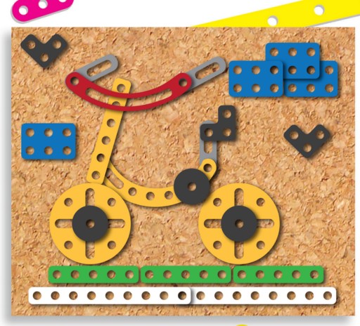 Dzieci mają bujną wyobraźnię, której mogą pozazdrościć nawet najwięksi pisarze fantastyki. Po co więc ją ograniczać? Pozwól swoim maluchom pokazać, na co ich stać. Rozwijaj ich kreatywność, zapewniając świetną zabawę i podziwiaj ich dzieła. „Przybijanka” to zabawka edukacyjna pozwalająca tworzyć niemal nieskończoną ilość geometrycznych obrazków. Pozwala dzieciom dać upust swojej energii i fantazji. Zadaniem gracza jest ułożenie metalowych blaszek na tablicy korkowej według własnego pomysłu lub śledząc wzory z instrukcji. Obraz powstaje poprzez przybijanie, za pomocą specjalnego młotka, kolejnych pinezek.