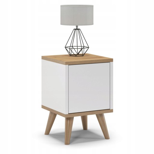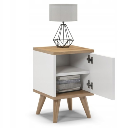 Stolik Nocny Szafka Biała z Drzwiczkami Tip On na Nóżkach Drewnianych