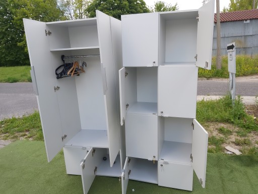 Posiadają 10 skrytek zamykanych na kluczyk oraz półki i drążek na wieszaki v