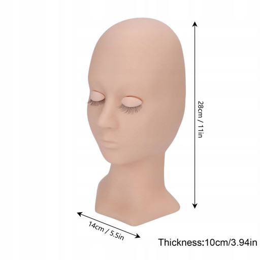 - Materiał: silikonowa głowa manekina, sztuczne rzęsy z włókien chemicznych