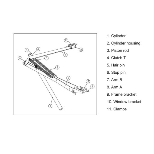 - Gwint cylindra z czujnikiem temperatury jest obracany i instalowany na wsporniku okna. Informacje na temat konkretnej metody instalacji okna szklarniowego można znaleźć w załączonej instrukcji instalacji.