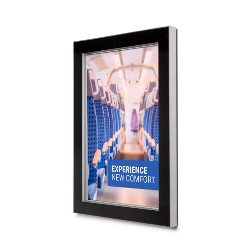 Gablota z czarnym, ceramicznym nadrukiem na przedniej szybie przeznaczona do użytku na zewnątrz. Trwała, wytrzymała i szczelna anodowana rama ma kolor srebrny. Certyfikat IP65, zapewnia ochronę przed wnikaniem pyłu i strumieniem wody lanym na obudowę z dowolnego kierunku. Wysokiej jakości panel tylny powlekany stalą, malowany proszkowo na biało, umożliwia stosowanie magnesów oraz markerów suchościeralnych. Drzwi otwierają się za pomocą pneumatycznego siłownika. Są zamykane na kluczyk. Jest odpowiednia do zamontowania na ścianie lub ogrodzeniu.