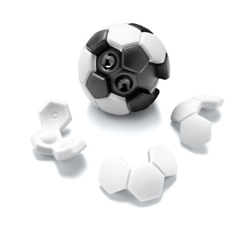 Dopasuj wszystkie 7 elementów do piłki bez poruszania najmniejszego elementu, który pełni funkcję startową. Pamiętaj, aby zakrywał on zawsze 1 miejsce z dołkiem oraz 1 miejsce bez dołka.