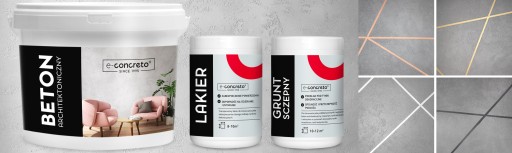Zestaw oryginalnych produktów e-concreto zawiera komplet produktów do wykonania dekoracji na powierzchni do 7m2: